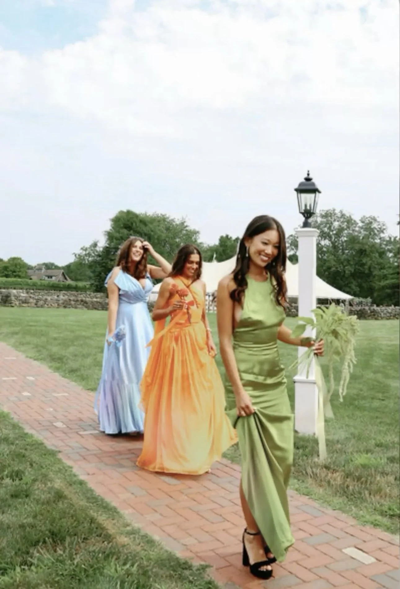 For the ladies, we’d love to see bright, bold, long dresses — fun, elegant and perfect for golden hour among the vines.
